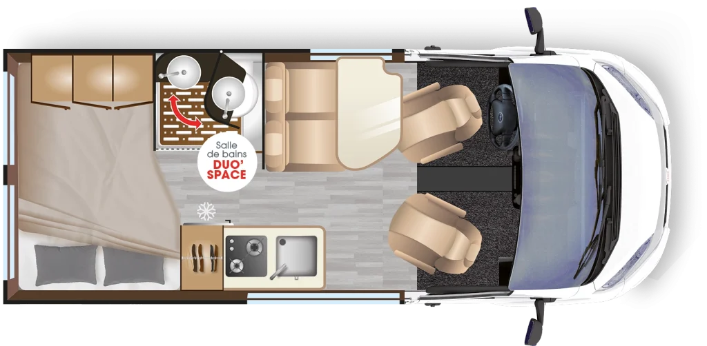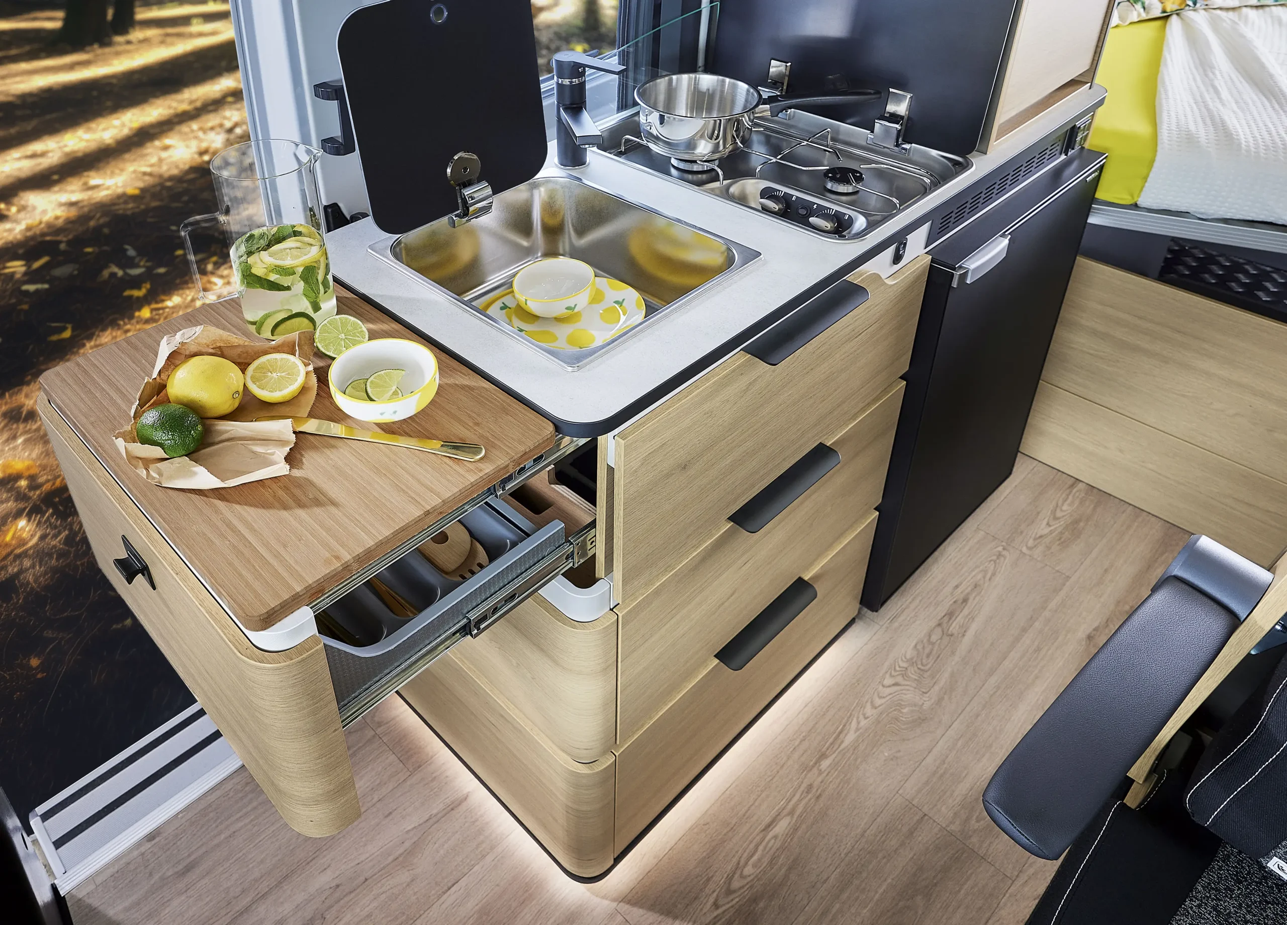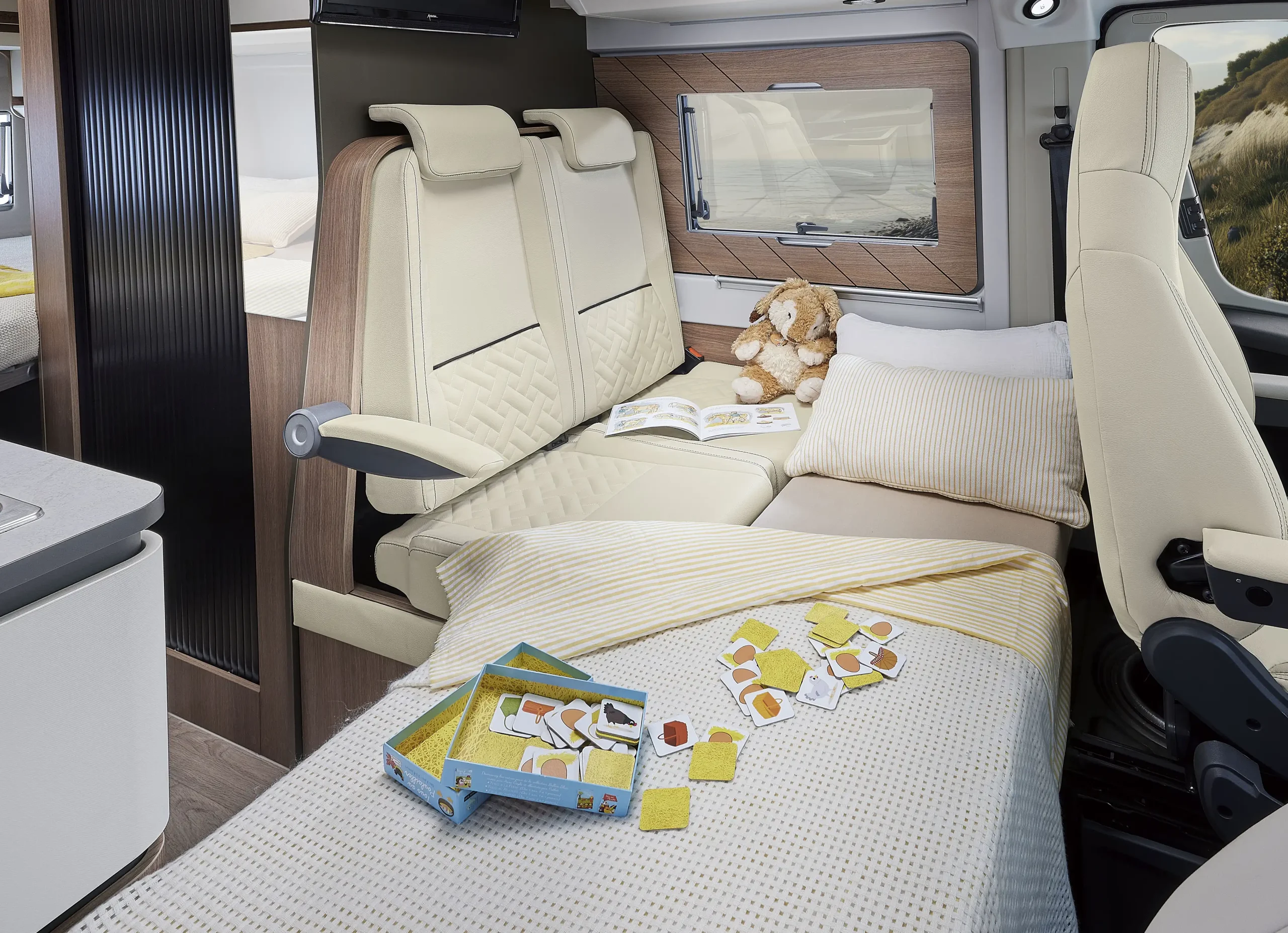 En su interior, la D43 Select ofrece una cama trasera transversal, salón convertible, cocina funcional y un cuarto de baño eficiente, todo ello con materiales de calidad, buena iluminación y aislamiento reforzado para viajes en cualquier estación. El espacio ha sido diseñado pensando en maximizar cada centímetro sin perder sensación de amplitud.
