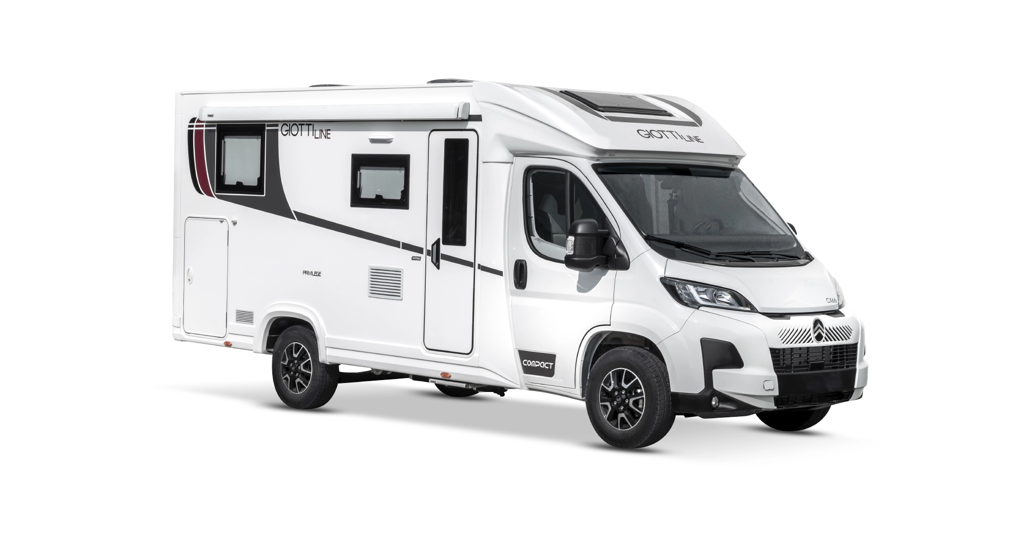 La Giottiline Compact CX66 es la autocaravana perfilada que consigue unir dimensiones contenidas (6,60 m de longitud) con una amplitud interior sorprendente. Con ancho de 2,15 m y altura aproximada de 2,88 m, está disponible sobre chasis Fiat, Citroën o Peugeot en versión de 2,2 L y 140 CV.