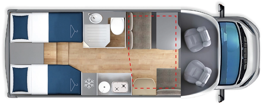 La Giottiline Siena 385 es una autocaravana perfilada que combina diseño, funcionalidad y confort. Su distribución está pensada para familias o parejas que buscan espacio y comodidad en ruta, con una zona de día amplia y un ambiente interior moderno y luminoso. Cada detalle ha sido diseñado para ofrecer una experiencia de viaje práctica y elegante.