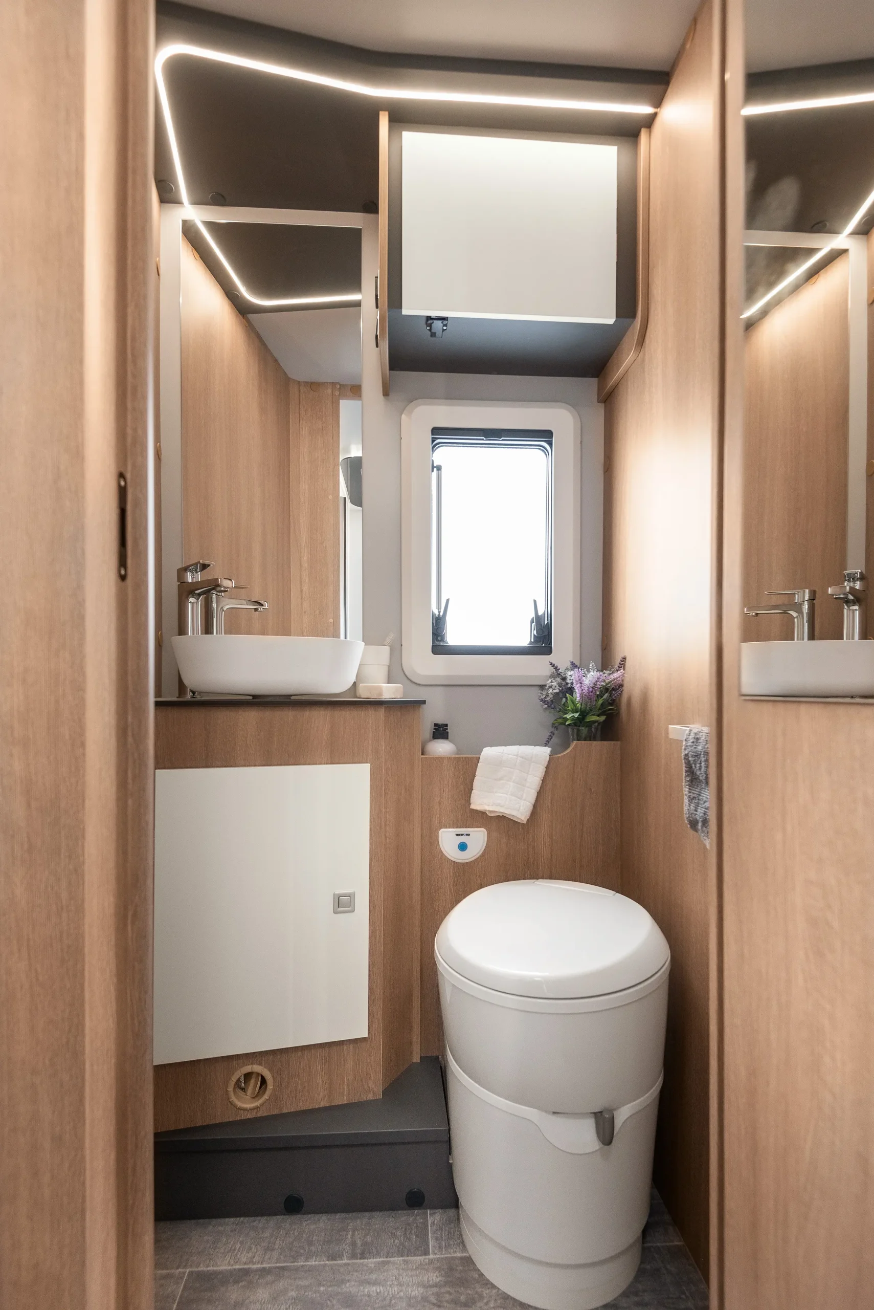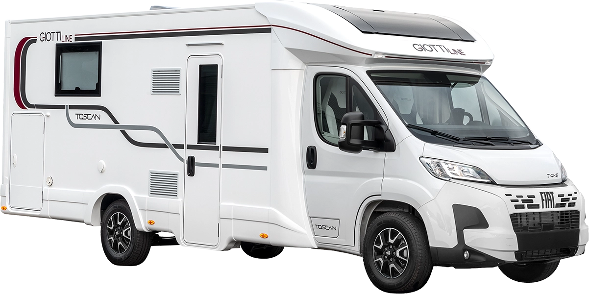 Construida sobre chasis Fiat Ducato, Citroën Jumper o Peugeot Boxer con motor de 140 cv y 2.200 cc, la Toscan 74NF combina prestaciones mecánicas modernas con un diseño exterior en fibra de 232 cm de ancho y 292 cm de alto. Es la elección ideal para quienes buscan una autocaravana espaciosa, elegante y equipada como una auténtica suite móvil, perfecta para largas escapadas y viajes en pareja con máximo confort.