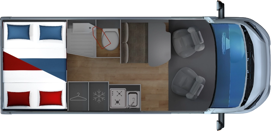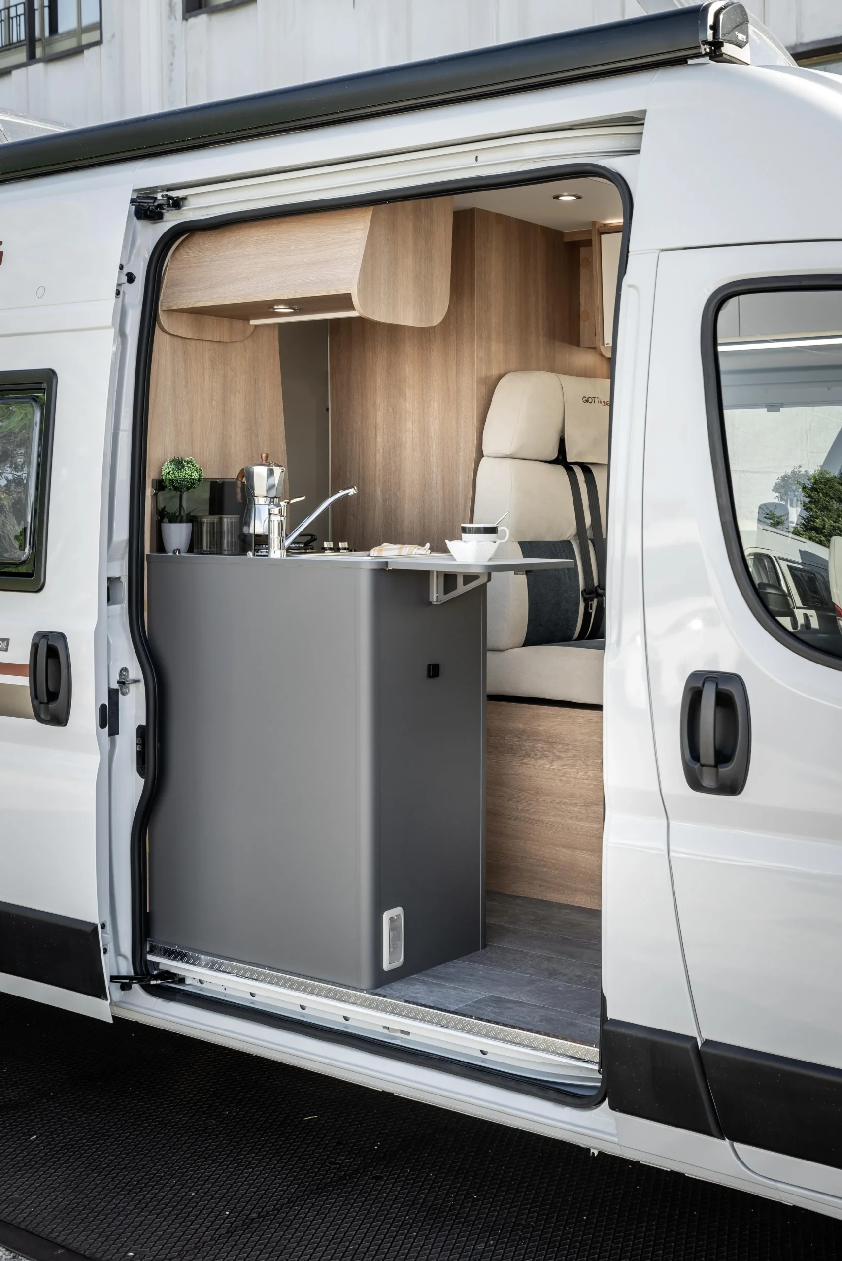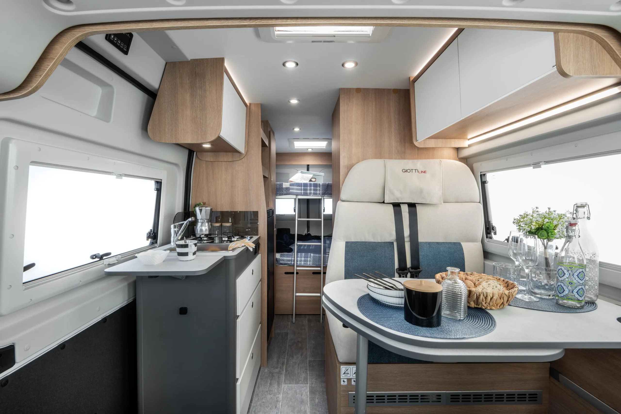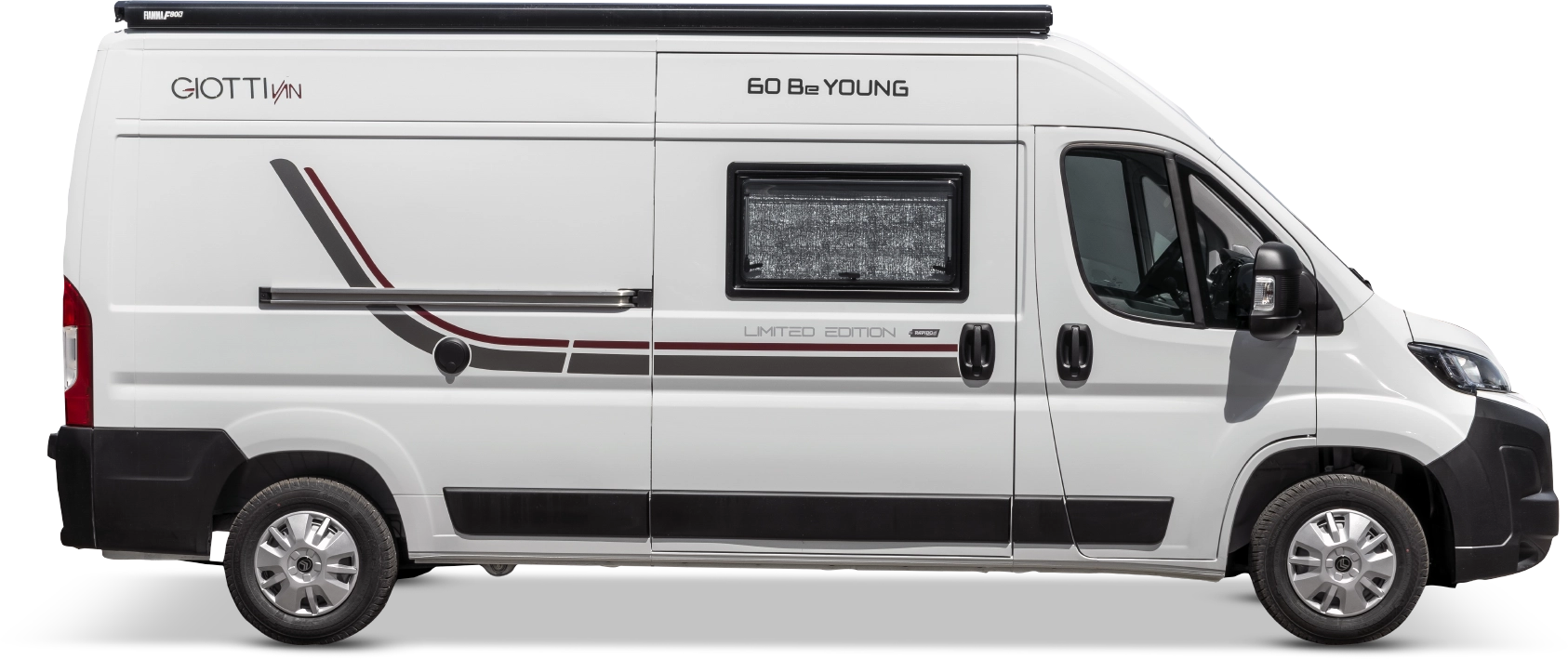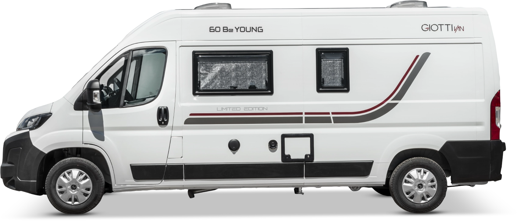 La GiottiVan 60 Be Young es una furgoneta camper de naturaleza dinámica pensada para quienes quieren viajar con estilo sin renunciar a practicidad. Con una longitud de 5,99 m, 2,05 m de ancho y 2,62 m de alto, ofrece una conducción ágil y versátil para escapadas y aventuras.