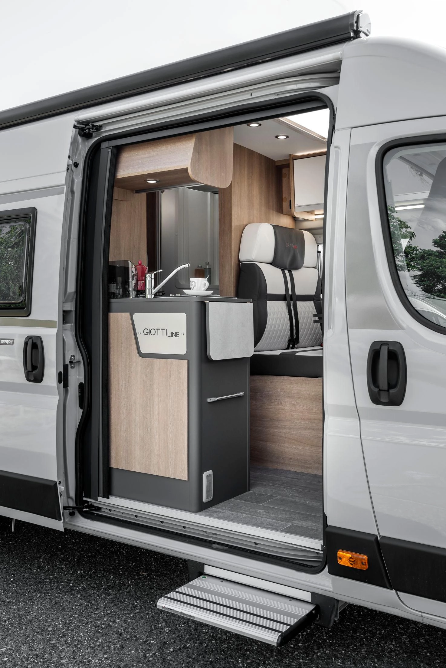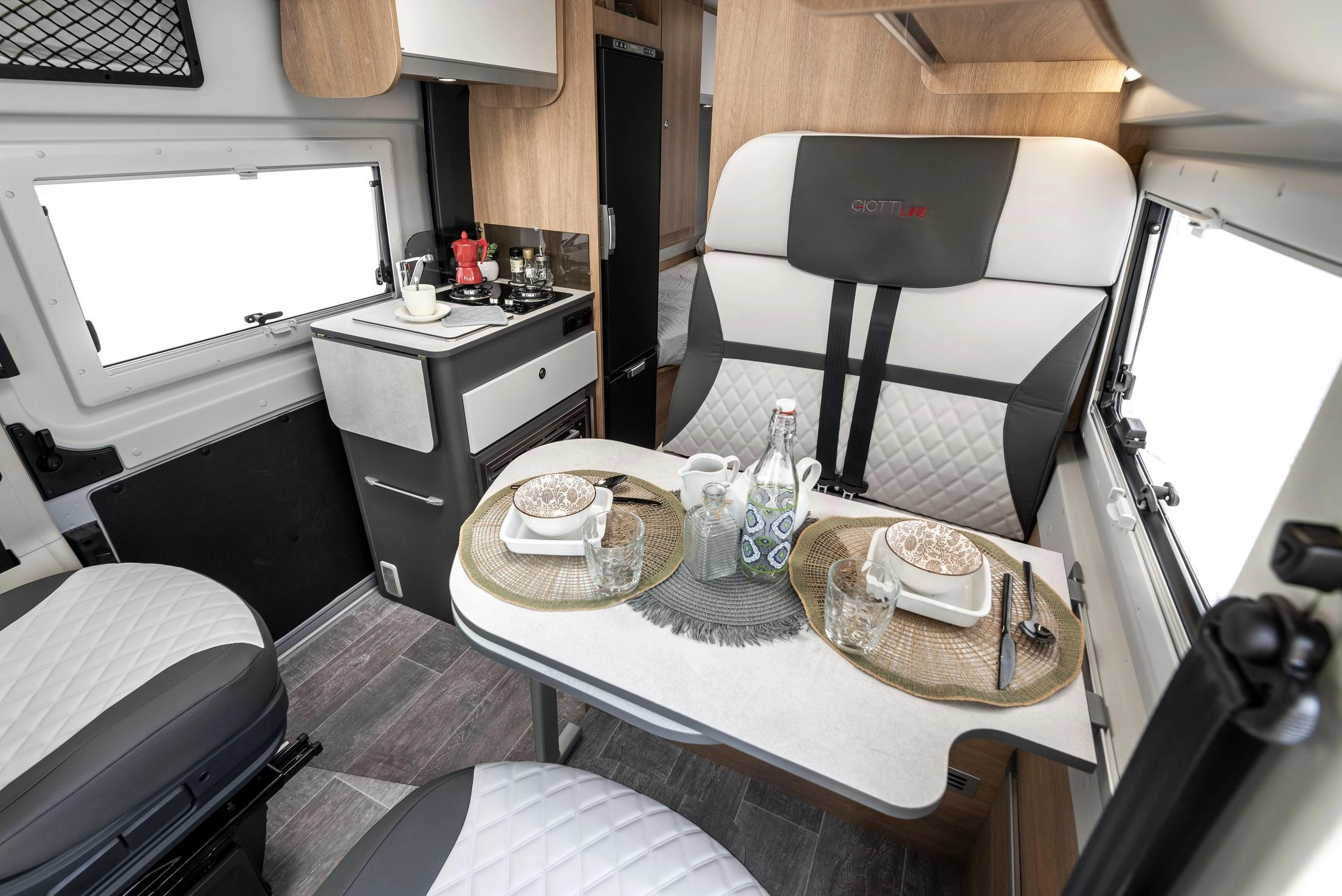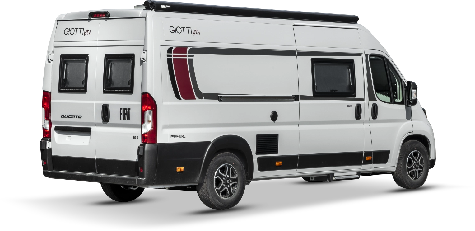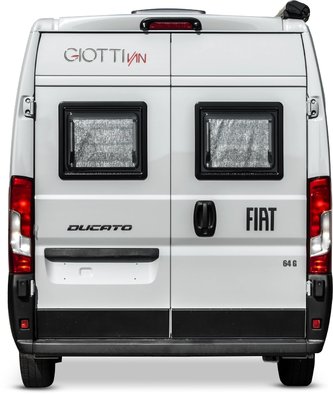 La Giottiline GiottiVan 64G es una furgoneta camper de 6,36 m de longitud y 2,05 m de ancho, diseñada para ofrecer un confort superior sin renunciar a la manejabilidad. Disponible sobre chasis Citroën Jumper, Peugeot Boxer o Fiat Ducato con motor 2,2 L / 140 CV.