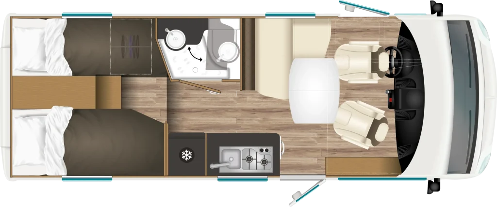 La Itineo Compact CJ660 es la autocaravana perfecta para quienes buscan libertad y agilidad sin renunciar al confort. Con menos de siete metros de longitud, ofrece una conducción suave y sencilla, ideal tanto para escapadas urbanas como para viajes largos por carretera. Su interior está diseñado con gran inteligencia: cuenta con cama transversal trasera, cama basculante delantera, una cocina funcional y un baño con ducha, todo integrado en un ambiente luminoso y moderno. Cada rincón ha sido optimizado para ofrecer la máxima comodidad, sin perder espacio de almacenamiento ni sensación de amplitud. La CJ660 representa la esencia del espíritu viajero: práctica, manejable y con el toque de elegancia característico de Itineo. En Camper Empordà, disponemos de financiación a medida y unidades limitadas, para que puedas vivir tus próximas aventuras con el equilibrio perfecto entre tamaño, confort y estilo.