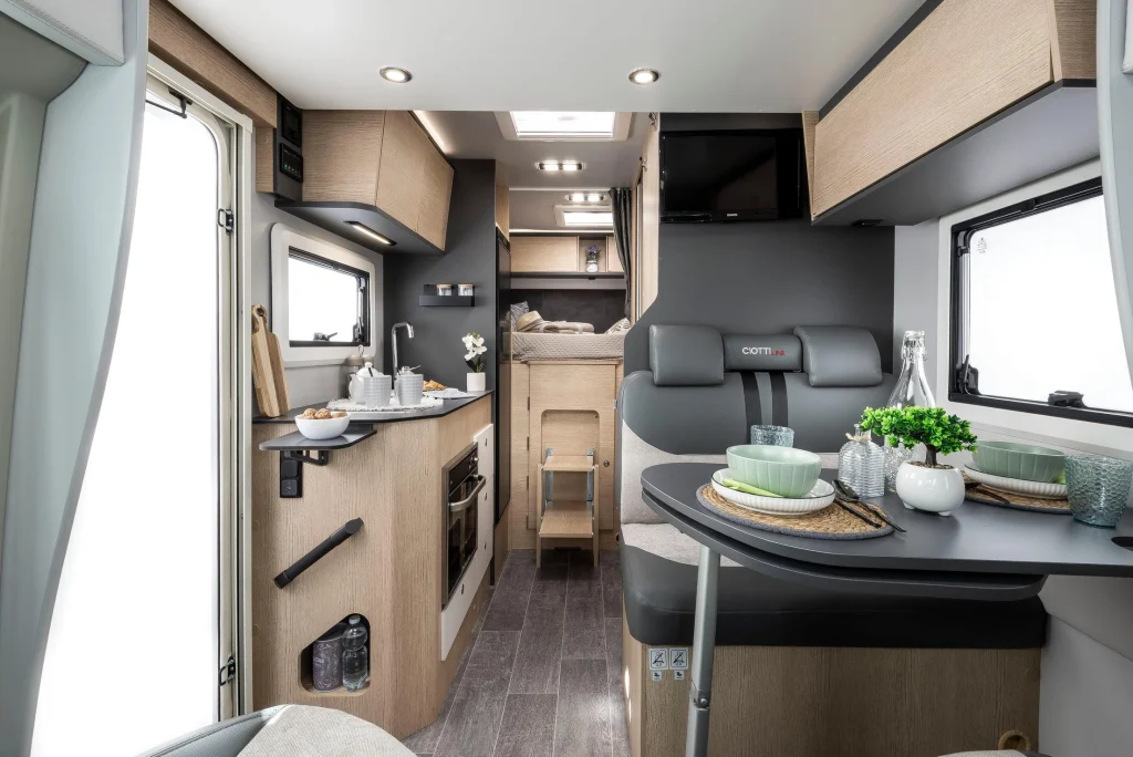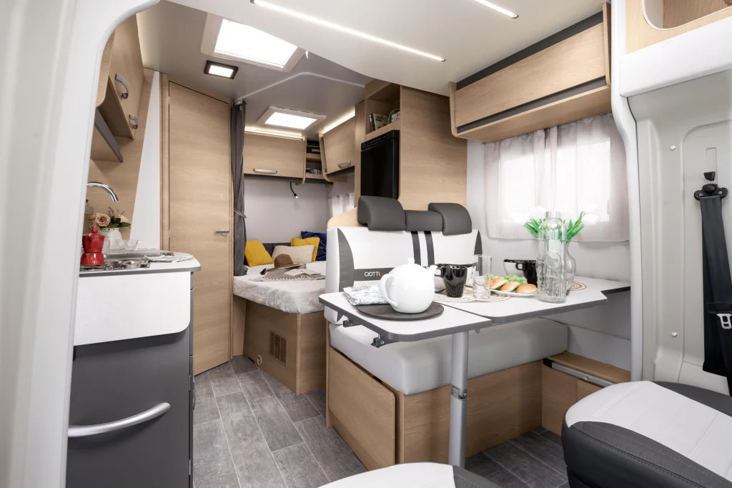 El auténtico corazón de una autocaravana, sea como sea, es su interior. De esta forma, tenemos autocaravanas con hasta 7 plazas homologadas y espacio para 1, 2, 3, 4, 5, 6 o 7 pasajeros. Las estancias más habituales suelen ser los dormitorios, la cocina, la sala de estar y el baño (completo en muchos casos). Sin embargo, el mobiliario puede variar en función de lo que necesites, siempre estando pensado para que te sientas como en casa. Es decir, en algunos modelos encontrarás toldos exteriores, pantalla u ordenador de abordo, GPS, placas solares… Siempre siendo vanguardia en la tecnología e incorporando las últimas novedades del sector.