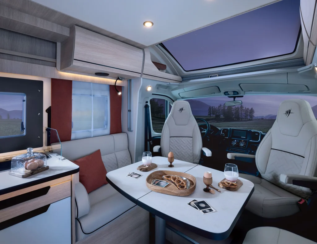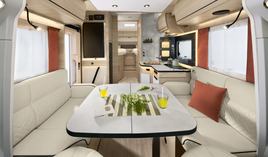 La vida a bordo es una absoluta maravilla, una experiencia que prioriza tu confort y el de todos los que te acompañan gracias a altavoces de última generación, sistema de iluminación personalizable que crea diferentes ambientes y mobiliario y tapicería cuidados hasta el mínimo detalle. En definitiva, varias camas, sala de estar, cocina y baño con lo último en tecnología, espacio en el que guardar todo el equipaje, electrodomésticos y otros extras que podrás seleccionar a través de Camper Park Emprodà, tu distribuidor oficial de autocaravanas Rapido.